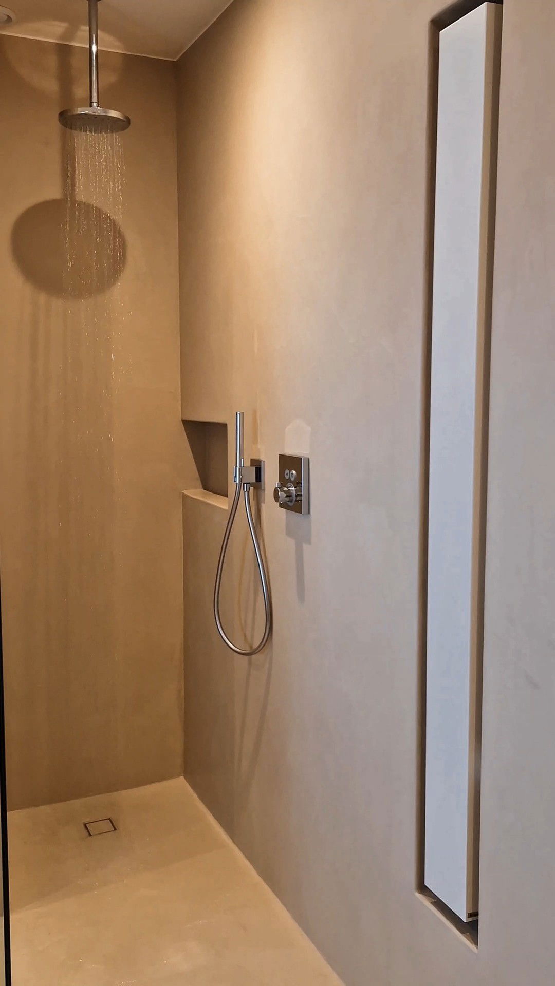 Important: Nu orice microciment din piață este potrivit pentru baie. Diferența o face sistemul tehnic și calitatea stratului final de protecție.